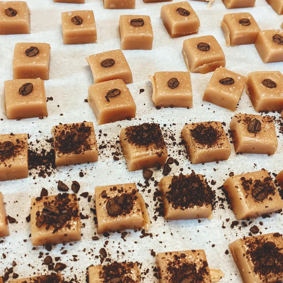 Savor the true essence of caramel perfection with our meticulously handcrafted small batch creations, infused with love, careful detail, and a perfect blend of tradition and innovation.